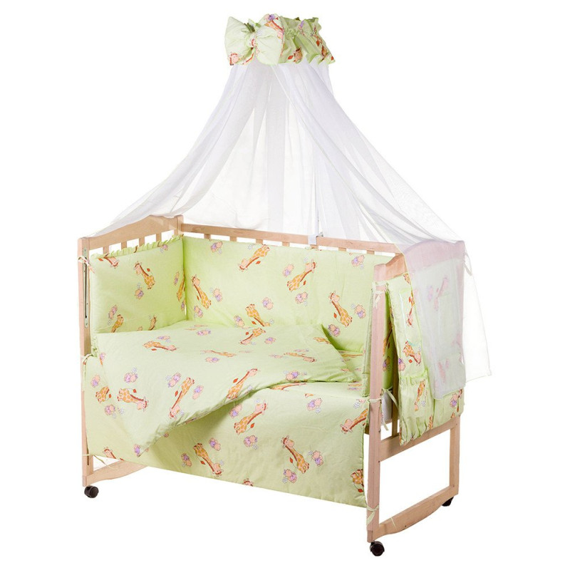 Комплектація:бортики;балдахін;подушка;ковдра;наволочка;підковдра;простирадло;