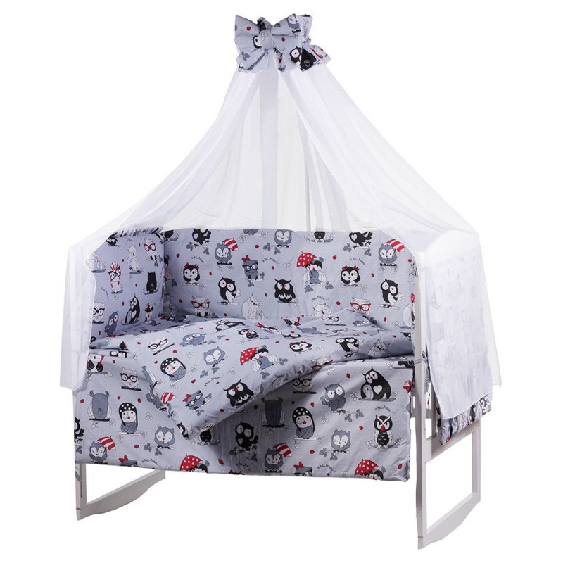 Комплектація:бортики;балдахін;подушка;ковдра;наволочка;підковдра;простирадло;
