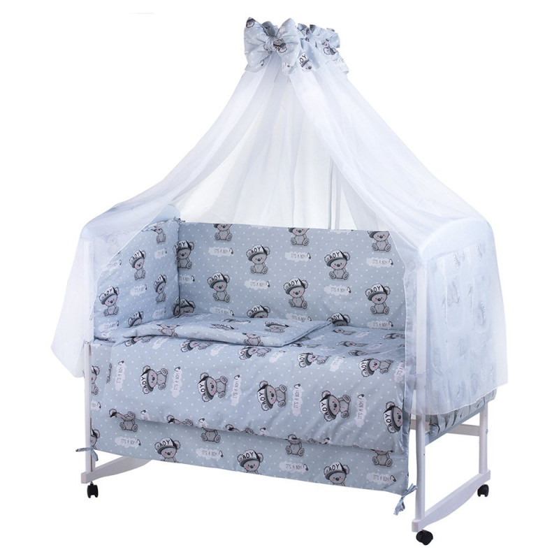 Комплектація:бортики;балдахін;подушка;ковдра;наволочка;підковдра;простирадло;