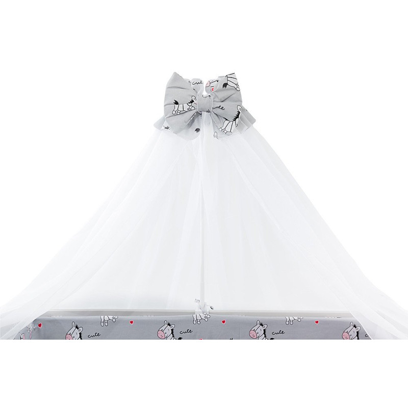 Комплектація:бортики;балдахін;подушка;ковдра;наволочка;підковдра;простирадло;