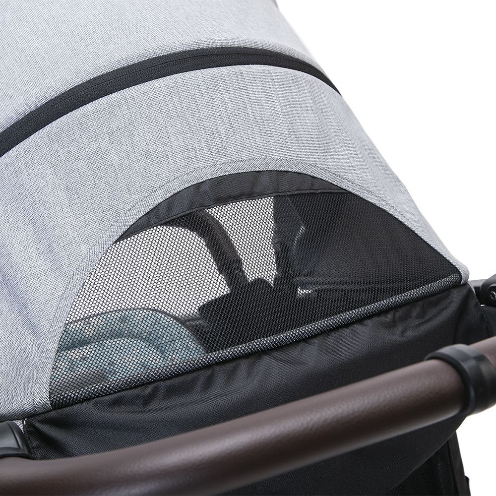 Ця коляска забезпечує надійний захист від будь-яких погодних умов завдяки збільшеному блоку і високоякісним матеріалам. Регулювання підніжки дозволяє комфортно підлаштовувати коляску під зріст дитини, а інноваційна система складання однією рукою робить використання ще зручнішим. Підвіска коліс та необслуговувані надувні колеса забезпечують плавний хід, навіть на нерівних поверхнях. Знімний бампер з екошкіри та великі кишені додають практичності, а тканина з фільтром UPF50+ захищає від сонячних променів.
