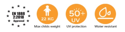 • Великий капюшон з подвійною UV50+ захистом - капюшон коляски має подвійну систему захисту від ультрафіолету і може бути розширений для максимального захисту від сонця та дощу.