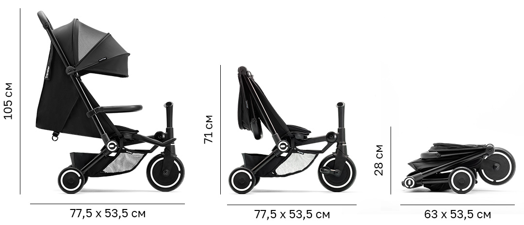 - 4-в-1: від коляски до трицикла одним натисканням.