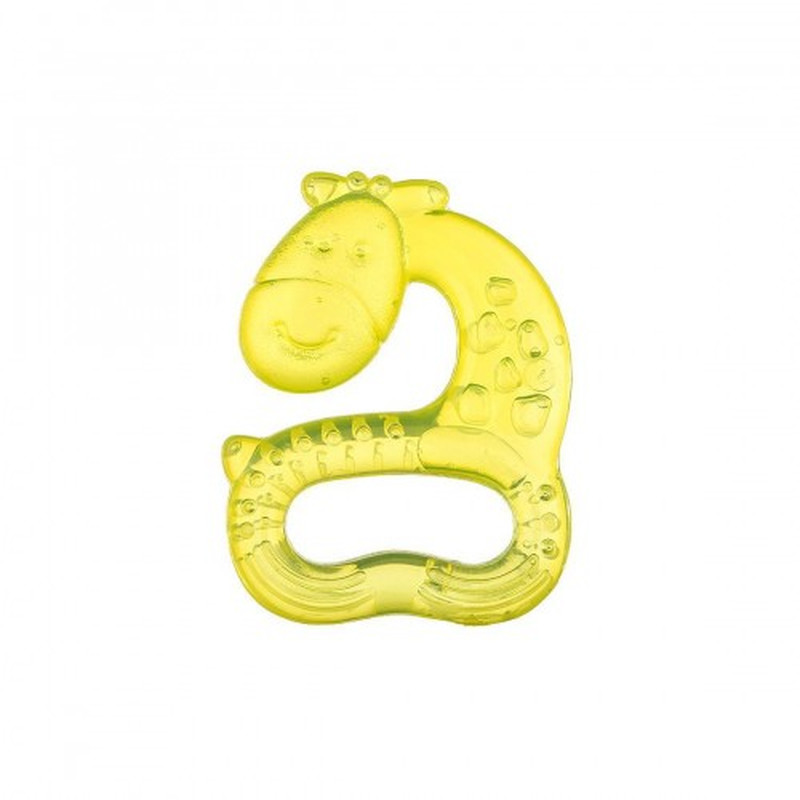 Симпатичний прорізувач у формі жирафи, наповнений прохолодною водою, має спеціальні виступи, що полегшують подразнення ясен малюка. Завдяки великому отвору в центрі його зручно тримати маленькими ручками. Прорізувач виготовлений із безпечних матеріалів, не містить шкідливих речовин, а його особлива ергономічна форма забезпечує максимальний комфорт у використанні.