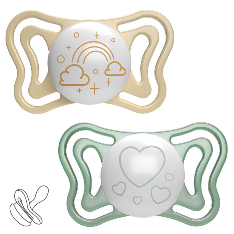 Пустушка Chicco Physio Light, силікон, 2-6 міс., 2 шт., люмінесцентна