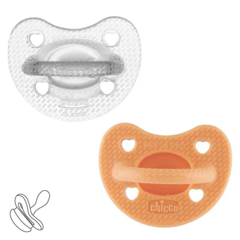 Набір екстрам'яких і текстурних силіконових пустушок у футлярі Chicco Physioforma® Luxe з покриттям SOFT SENSE та соскою Active для правильного розвитку м'язів рота, природного положення язика та рівномірного розподілу тиску на піднебіння. Рекомендовано для дітей віком від 6 до 16 місяців. Численні дослідження підтвердили, що язик, а особливо його правильне розташування (на піднебінній плямі) – гарантія правильного розвитку щелеп і прикусу. При неправильному положенні язика, приблизно у віці від 4-6 років, лікарі-ортодонти діагностують занадто маленьку щелепу і скупчення зубів, і в результаті рекомендують встановлення незнімного ортодонтичного апарату для розкриття піднебінного шва і розширення верхньої щелепи. Саме тому анатомічна форма пустушок Physioforma®, створена в результаті співпраці Дослідницького центру Chicco і команди провідних логопедів, ортодонтів, неонатологів та педіатрів, забезпечує фізіологічне положення та природні рухи язика та рівномірний розподіл тиску на піднебіння. Екстрам'яка та суперніжна Лита конструкція без швів ніжна та дбайлива для чутливої шкіри дитини, гарантує максимальний комфорт навіть під час сну. Як материнські груди М'яка та вигнута основа пустушки дозволяє губам та язику перебувати у фізіологічному положенні, як під час грудного вигодовування. Вентиляційні отвори Забезпечують кращу циркуляцію повітря, що значно знижує ймовірність виникнення подразнення на шкірі. Соска Active з силікону 100% текстурований силікон – матовий та гіпоалергенний матеріал без смаку та запаху. Три різні текстури в залежності від віку дитини. Доступна в 3 розмірах: 2-6 міс., 6-16 міс., 16-36 міс. Футляр у комплекті дозволяє дезінфікувати пустушку в мікрохвильовій печі, видаляючи 99,9% шкідливих мікробів всього за 3 хвилини: Крок 1 Налийте воду до вказаного рівня, помістіть пустушку у футляр і закрийте кришку. Крок 2 Поставте футляр у мікрохвильову піч на 3 хвилини при потужності 750 Вт. Дайте пустушці охолонути.