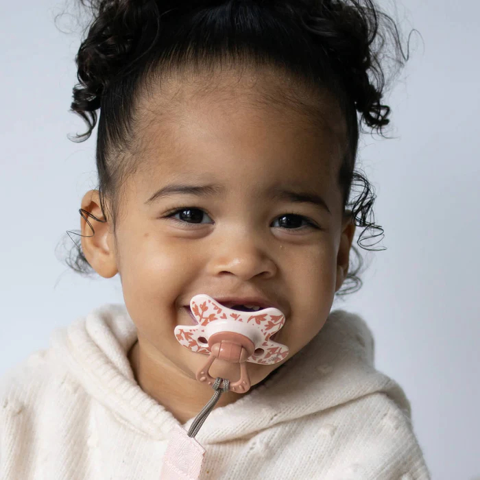 Пустушка має щиток у формі метелика, що забезпечує ідеальне прилягання до обличчя вашої дитини. Виїмка для носика дозволяє малюкові вільно дихати носом. Два повітряних отвори з кожного боку забезпечують додатковий потік повітря, запобігаючи подразненню шкіри.