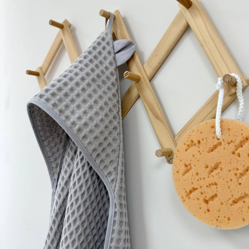 Рушник-куточок з капюшоном виготовлено з рельєфної, щільної вафельної тканини, що дихає, відмінно вбирає вологу. Рушник з капюшоном ідеально підходить для ніжної чутливої ​​шкіри новонародженого малюка після купання вдома.