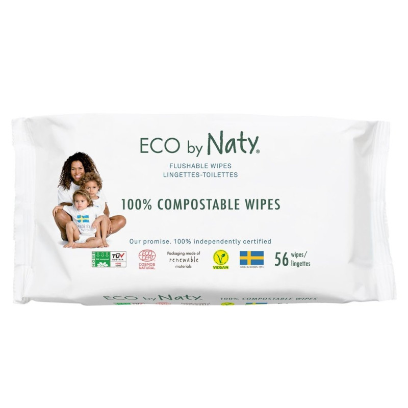 Серветки Eco by Naty Дитячі вологий туалетний папір Змиваючі, 56штв упаковці.