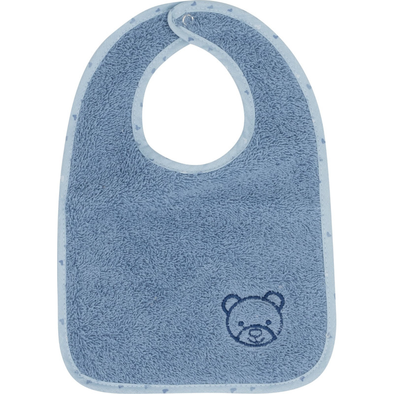 Слинявчик Bubaba by FreeON LITTLE TEDDY BLUE водонепроникний. Виготовлений з двох шарів: футер (94% бавовна і 6% поліестер) і водонепроникної підкладки (100% поліестер з поліуретановим покриттям). З кнопками та вишивкою.