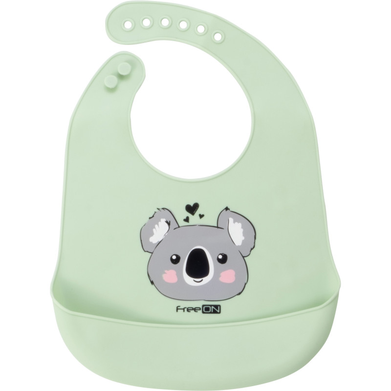 Слинявчик FreeON Тварини зелений з коалою. Силіконовий слюнявчик високої якості і безпечний для їжі силікон є мяким і ніжним до чутливої шкіри малюка. Дуже зручний для чищення - просто промивайте теплою водою і витирайте. У слюнявчика є великий кишеньковий карман, тому їжа не буде розкидана, а збиратиметься в кишені, і малюк зможе їсти самостійно. Матеріал : Силікон Розмір : 32 x 24 см
