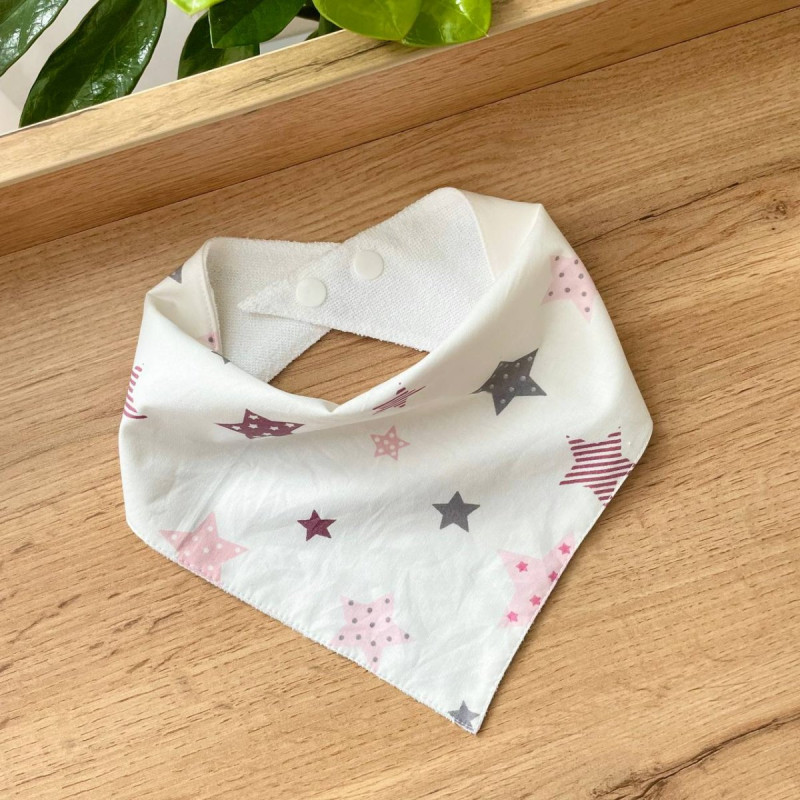 Слинявчик-куточок на кнопці являє собою трикутник розміром 46х23х23, двошаровий склад, 100% бавовна. Одна сторона виконана з попліну, а інша з м'якої махри. Між ними знаходиться спеціальний мембранний шар, який повністю водонепроникний.