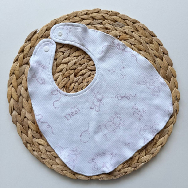 Слинявчик на кнопці являє собою практичний і дихаючий виріб розміром 28х33 см, 100% бавовна.