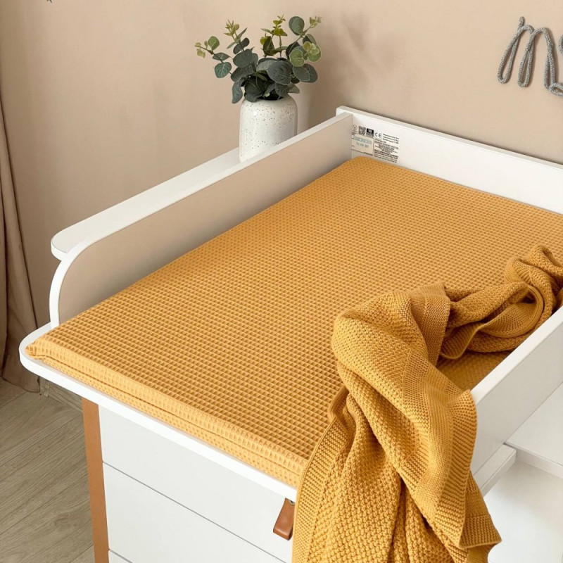 Пеленальний матрац із вафельної тканини - призначений для використання на твердій поверхні. Наповнювач матрацика – піна, пружний, сучасний, модифікований матеріал, який рівномірно розподіляє навантаження, завдяки чому малюк почувається затишно та комфортно. Чохол сповивального матрацика - знімний, його можна зняти для зручнішого прання.