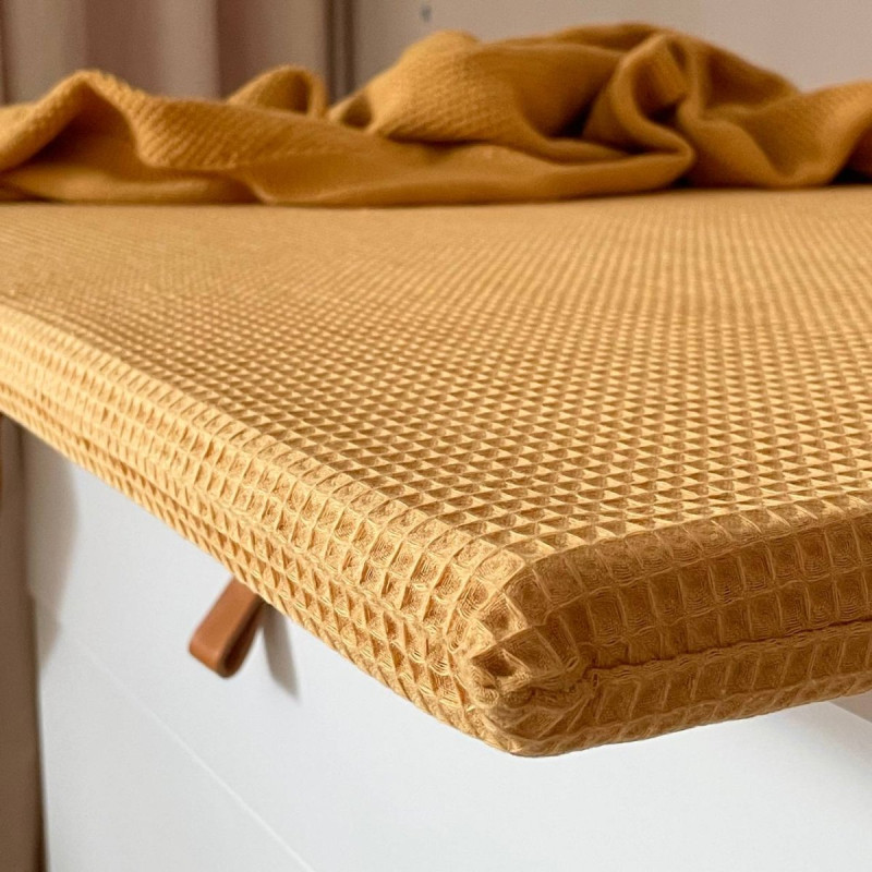 Пеленальний матрац із вафельної тканини - призначений для використання на твердій поверхні. Наповнювач матрацика – піна, пружний, сучасний, модифікований матеріал, який рівномірно розподіляє навантаження, завдяки чому малюк почувається затишно та комфортно. Чохол пеленального матрацика - знімний, його можна зняти для зручнішого прання.