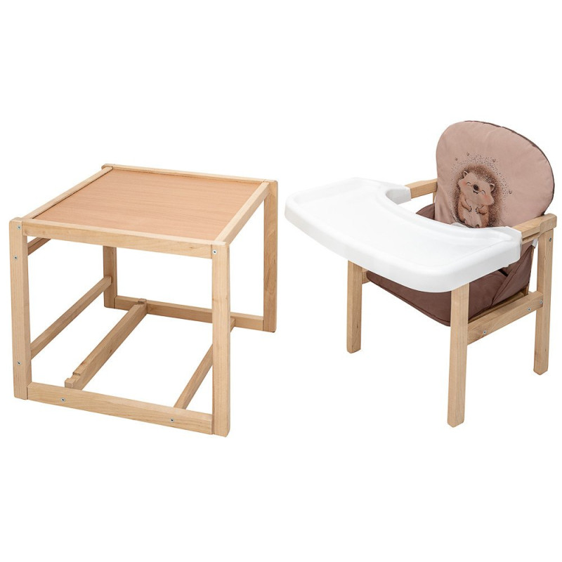 Згодом стілець перетворюється на зручне місце для ігор та творчості, просто знявши стільницю. Чохол сидіння виготовлений з легко митого матеріалу, забезпечуючи простоту догляду за виробом.
