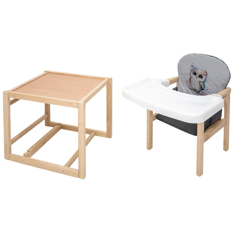 Згодом стілець перетворюється на зручне місце для ігор та творчості, просто знявши стільницю. Чохол сидіння виготовлений з легко митого матеріалу, забезпечуючи простоту догляду за виробом.