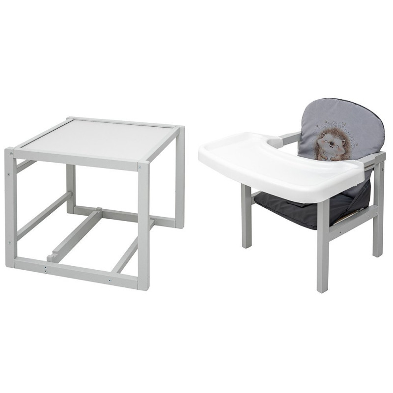 Згодом стілець перетворюється на зручне місце для ігор та творчості, просто знявши стільницю. Чохол сидіння виготовлений з легко митого матеріалу, забезпечуючи простоту догляду за виробом.