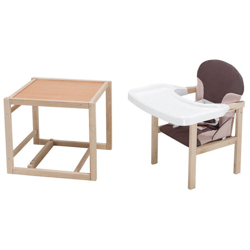 Пізніше модель трансформується у стільчик-парту для ігор та творчості. Для цього потрібно лише зняти стільницю. Чохол сидіння виконаний з матеріалу, що миється.
