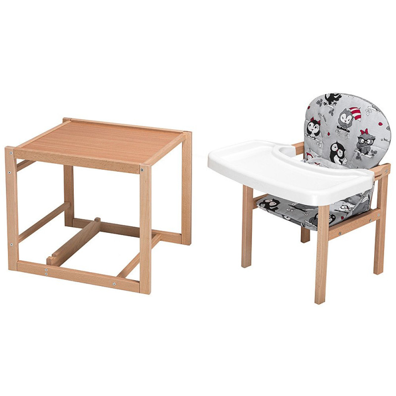 Пізніше модель трансформується у стільчик-парту для ігор та творчості. Для цього потрібно лише зняти стільницю. Чохол сидіння виконаний з матеріалу, що миється.