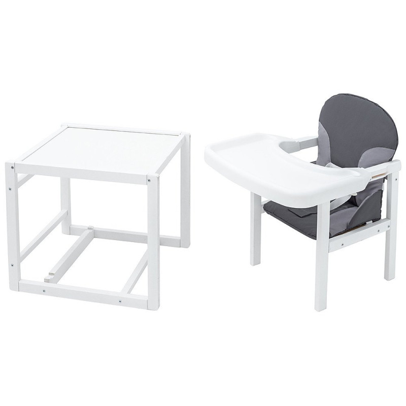 Пізніше модель трансформується у стільчик-парту для ігор та творчості. Для цього потрібно лише зняти стільницю. Чохол сидіння виконаний з матеріалу, що миється.