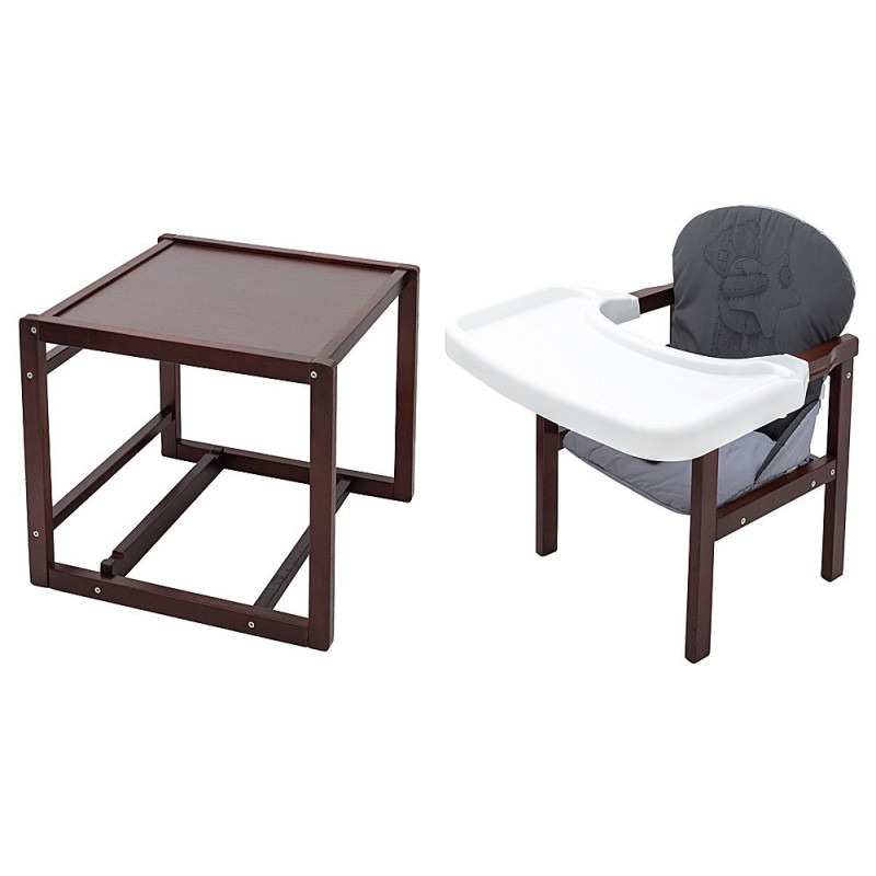 Пізніше модель трансформується у стільчик-парту для ігор та творчості. Для цього потрібно лише зняти стільницю. Чохол сидіння виконаний з матеріалу, що миється.