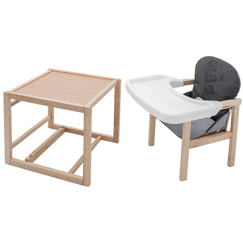 Пізніше модель трансформується у стільчик-парту для ігор та творчості. Для цього потрібно лише зняти стільницю. Чохол сидіння виконаний з матеріалу, що миється.