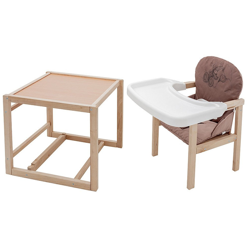 Пізніше модель трансформується у стільчик-парту для ігор та творчості. Для цього потрібно лише зняти стільницю. Чохол сидіння виконаний з матеріалу, що миється.