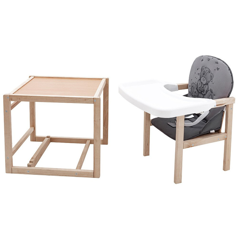 Пізніше модель трансформується у стільчик-парту для ігор та творчості. Для цього потрібно лише зняти стільницю. Чохол сидіння виконаний з матеріалу, що миється.