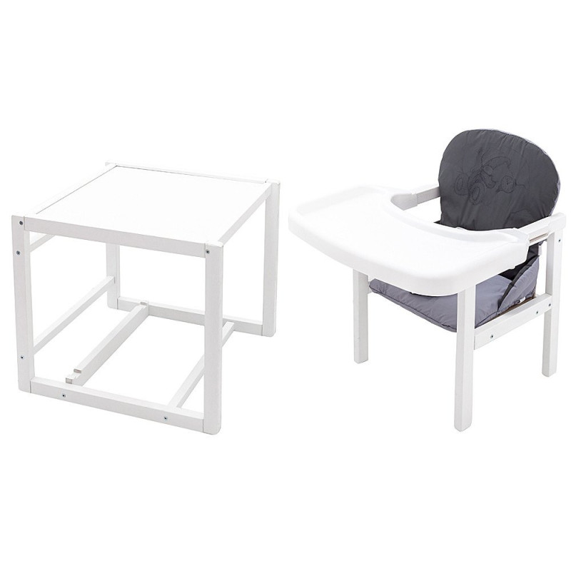 Пізніше модель трансформується у стільчик-парту для ігор та творчості. Для цього потрібно лише зняти стільницю. Чохол сидіння виконаний з матеріалу, що миється.