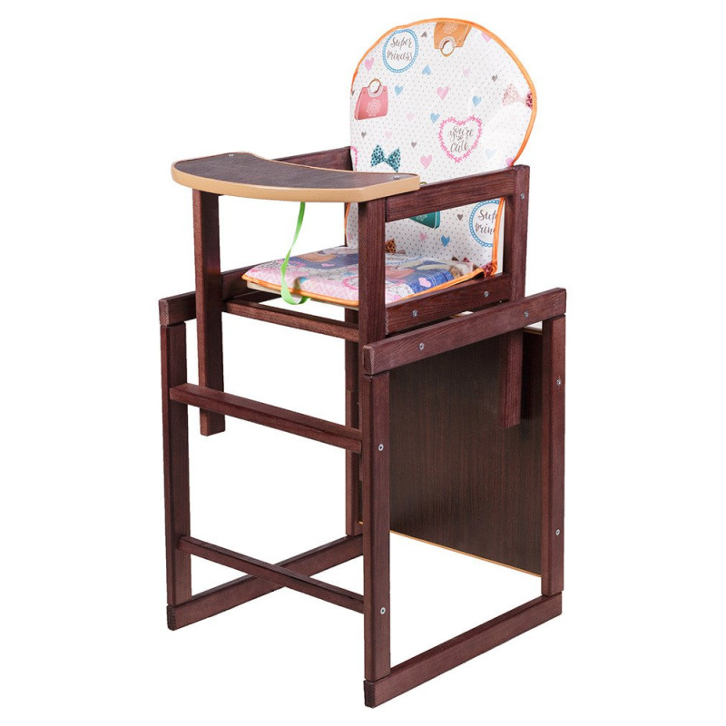 Дерев'яний стільчик зручна форма для спільного відпочинку та годування Наталка може трансформуватися з високого стільця зручна форма для спільного відпочинку та годування з індивідуальною стільницею, в парту для ігор та занять. Використання стільця-трансформера Наталка рекомендується дітям з 6 місяців до 6 років. Стільчик виготовлений з натурального шліфованого дерева з безпечним покриттям. Стільниця парти та стільця – ламіноване ДСП. Щільний непромокальний чохол сидіння легко протирається вологою губкою. Сидіння та спинка – м'які. Між ніжками у дитини передбачений ремінець обмежувач. При використанні як окремий столик і стільчик маленька стільниця і обмежувач можуть зніматися. Сидіння має м'яку високу спинку. У комплекті інструкція зі збирання.