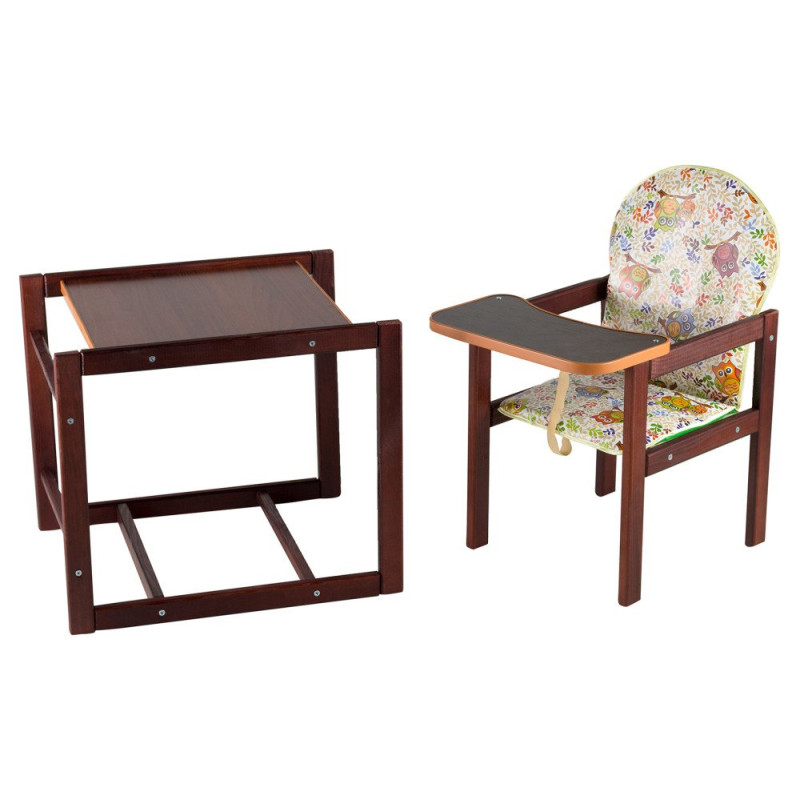 Дерев'яний стільчик зручна форма для спільного відпочинку та годування Наталка може трансформуватися з високого стільця зручна форма для спільного відпочинку та годування з індивідуальною стільницею, в парту для ігор та занять. Використання стільця-трансформера Наталка рекомендується дітям з 6 місяців до 6 років. Стільчик виготовлений з натурального шліфованого дерева з безпечним покриттям. Стільниця парти та стільця – ламіноване ДСП. Щільний непромокальний чохол сидіння легко протирається вологою губкою. Сидіння та спинка – м'які. Між ніжками у дитини передбачений ремінець обмежувач. При використанні як окремий столик і стільчик маленька стільниця і обмежувач можуть зніматися. Сидіння має м'яку високу спинку. У комплекті інструкція зі збирання.
