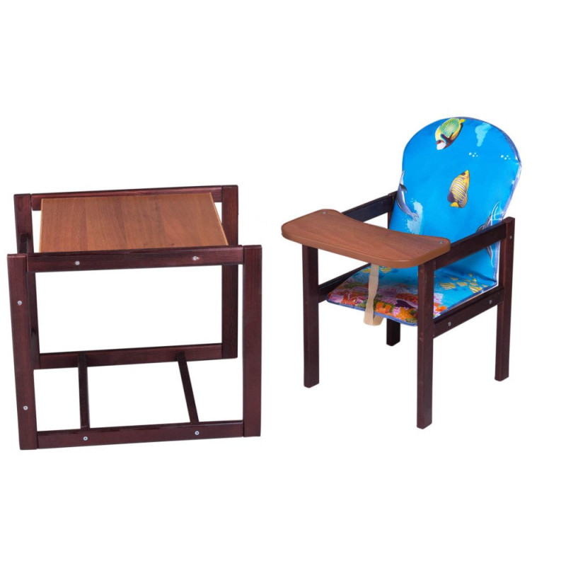 Дерев'яний стільчик зручна форма для спільного відпочинку та годування Наталка може трансформуватися з високого стільця зручна форма для спільного відпочинку та годування з індивідуальною стільницею, в парту для ігор та занять. Використання стільця-трансформера Наталка рекомендується дітям з 6 місяців до 6 років. Стільчик виготовлений з натурального шліфованого дерева з безпечним покриттям. Стільниця парти та стільця – ламіноване ДСП. Щільний непромокальний чохол сидіння легко протирається вологою губкою. Сидіння та спинка – м'які. Між ніжками у дитини передбачений ремінець обмежувач. При використанні як окремий столик і стільчик маленька стільниця і обмежувач можуть зніматися. Сидіння має м'яку високу спинку. У комплекті інструкція зі збирання.