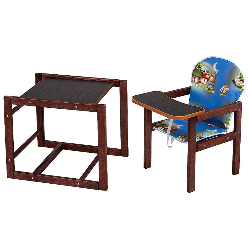 Дерев'яний стільчик зручна форма для спільного відпочинку та годування Наталка може трансформуватися з високого стільця зручна форма для спільного відпочинку та годування з індивідуальною стільницею, в парту для ігор та занять. Використання стільця-трансформера Наталка рекомендується дітям з 6 місяців до 6 років. Стільчик виготовлений з натурального шліфованого дерева з безпечним покриттям. Стільниця парти та стільця – ламіноване ДСП. Щільний непромокальний чохол сидіння легко протирається вологою губкою. Сидіння та спинка – м'які. Між ніжками у дитини передбачений ремінець обмежувач. При використанні як окремий столик і стільчик маленька стільниця і обмежувач можуть зніматися. Сидіння має м'яку високу спинку. У комплекті інструкція зі збирання.