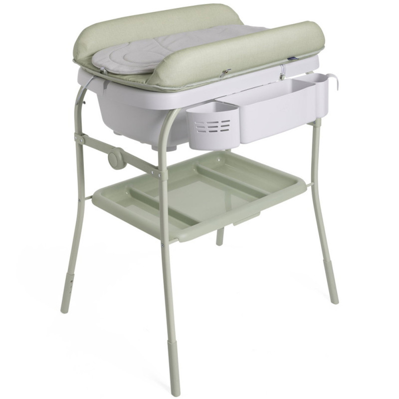 Cuddle & Bubble – пеленальний столик і ванночка 2 в 1 від італійського бренду Chicco для дітей від народження до 1 року. Столик укомплектовано практичним контейнером для зберігання рушників і підгузків, тримачем для губки та лійкою для миття. Зроблено в Італії. Пеленальний столик Пеленальна поверхню доповнена м'яким анатомічним вкладишем і підходить для дітей з народження. Бокові бортики гарантують безпеку МАлюка. Ванночка Ванночка з практичним зливом із зливною трубкою може використовуватися окремо. Три положення висоти Регулювання висоти дозволяє адаптувати Cuddle & Bubble під зріст батьків під час сповивання і купання. Компактна конструкція Cuddle & Bubble легко складається і займає мало місця. Зверніть увагу: на столик для сповивання з ванночкою Chicco Cuddle & Bubble діє гарантія терміном на 6 місяців. З детальними умовами можна ознайомитися в розділі Гарантія та сервіс.