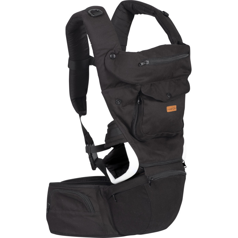 Сумка-кенгуру FreeON Comfort 8 в 1 black. Сумка- кенгуру 8 в 1 — це продуманий і ідеальний вибір, який пропонує безпечне та комфортне перенесення дитини у 8 різних положеннях. Завдяки ширині та мякому набивному поясу рівномірно розподіляє вагу дитини з верхньої частини спини, плечей і рук навколо поперекової частини та знімає навантаження на хребет батьків під час носіння дитини. Особливість стегнового сидіння, яке призначене для перенесення дитини без верхньої частини сумкис, оскільки воно витримує вагу дитини знизу, а завдяки антиковзаючій поверхні забезпечує їй безпечне та стабільне сидіння. Також є передня кишеня, яку можна згорнути, що забезпечує кращу циркуляцію повітря та забезпечує додаткове комфортне сидіння дитини. Підходить для дітей від 5 місяців до 15 кг. Цей продукт рекомендований фізіотерапевтами та оздоровчими центрами. Підходить для немовлят вагою від 3,5 до 15 кг або прибл. від 4 до 24 місяців: