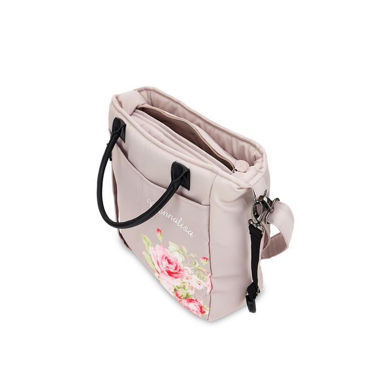 Ця сумка поєднує в собі підписний квітковий візерунок Monnalisa з функціональністю, необхідною для щоденних прогулянок. У ній є велике відділення для всіх необхідних речей, два менших відділення, тримач для пляшок і кишеня на блискавці для зберігання ваших особистих речей. У комплекті також є зручний килимок для сповивання.