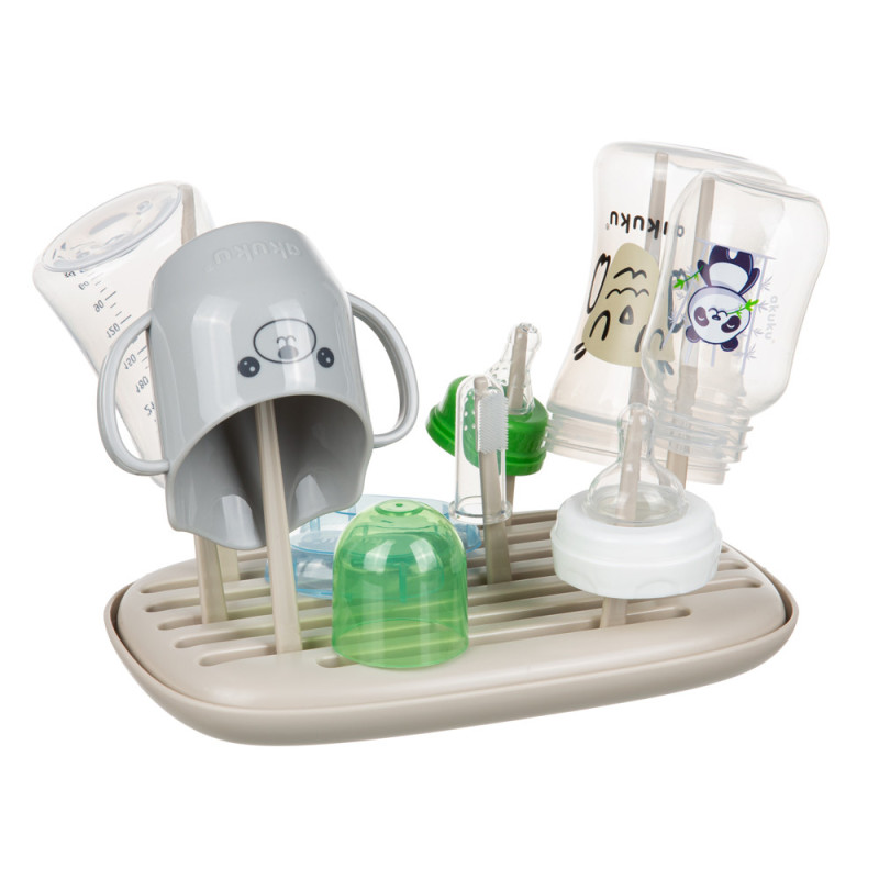 Універсальна сушарка для пляшок та аксесуарів ідеально підходить для використання як удома, так і у подорожі. Він функціональний, підходить для всіх типів пляшок, легко складається та миється. Він був розроблений, щоб легко набирати воду без необхідності поміщати її у раковину.