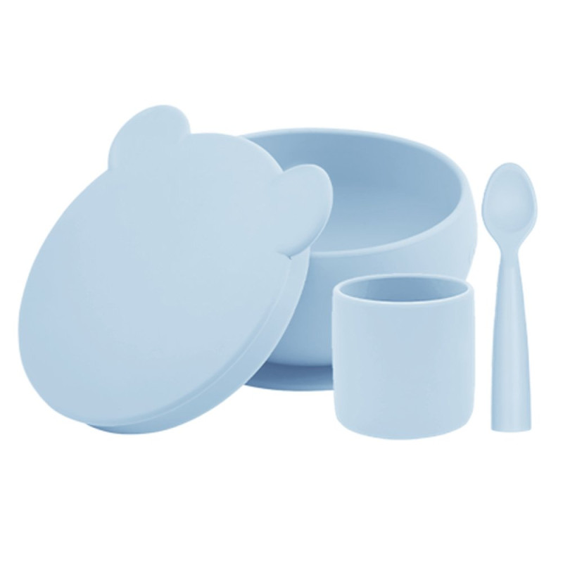 Тарілка MinikOiOi Набір для годування силіконовий миска з кришкою, чашка, ложка BLW Set I Mineral Blue