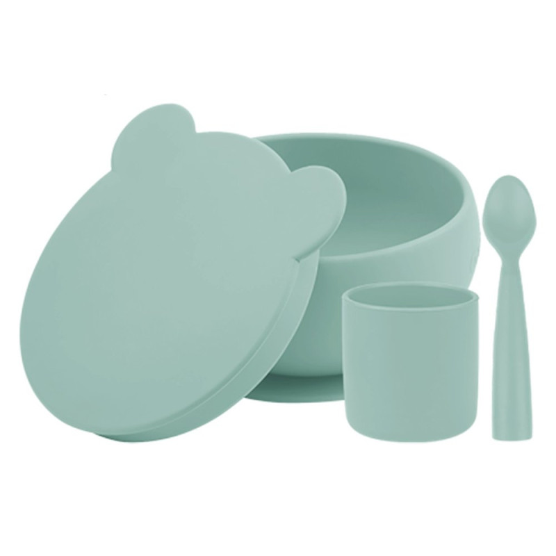 Тарілка MinikOiOi Набір для годування силіконовий миска з кришкою, чашка, ложка BLW Set I River Green