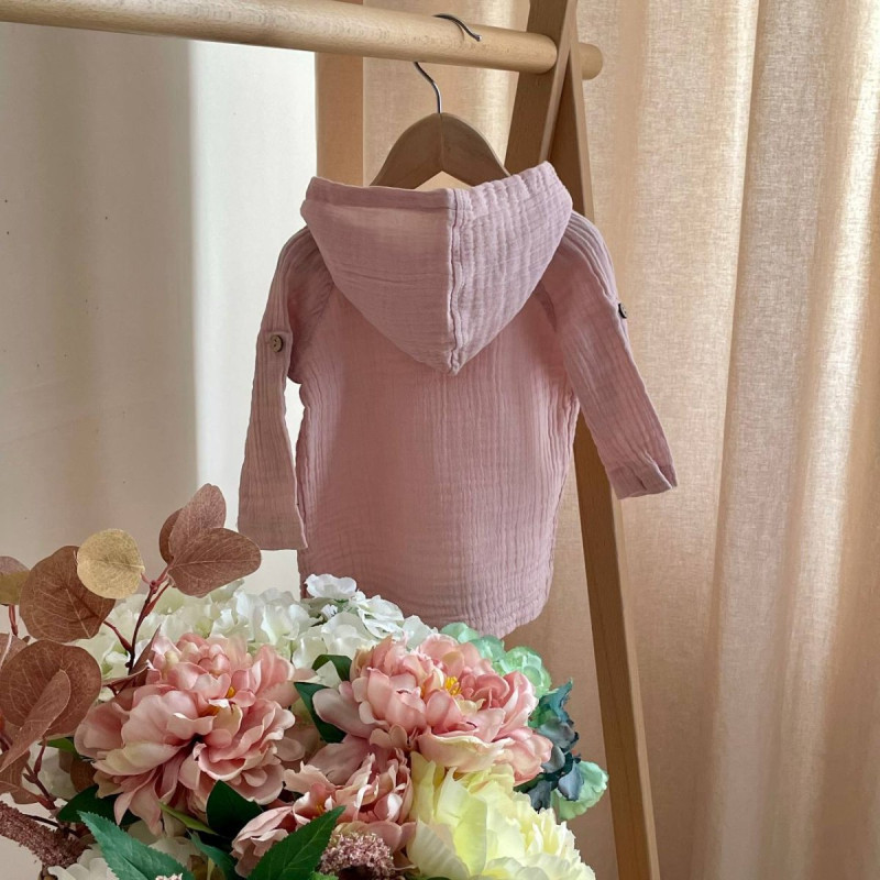 М'яка, приємна на дотик і комфортна туніка виконана з легкого, невагомого та міцного матеріалу - мусліну. Така туніка не парить, не сковує рухів. Її можна носити як захист від сонця, як сорочку під шорти або штанці, або використовувати як халатик після купання. Довжина рукава регулюється завдяки підворотам на гудзику, по горловині передбачено шнурівку.