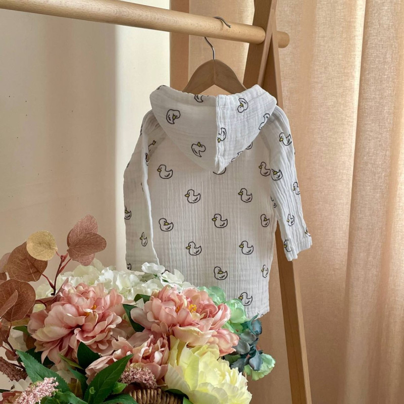 М'яка, приємна на дотик і комфортна туніка виконана з легкого, невагомого та міцного матеріалу - мусліну. Така туніка не парить, не сковує рухів. Її можна носити як захист від сонця, як сорочку під шорти або штанці, або використовувати як халатик після купання. Довжина рукава регулюється завдяки підворотам на гудзику, по горловині передбачено шнурівку.