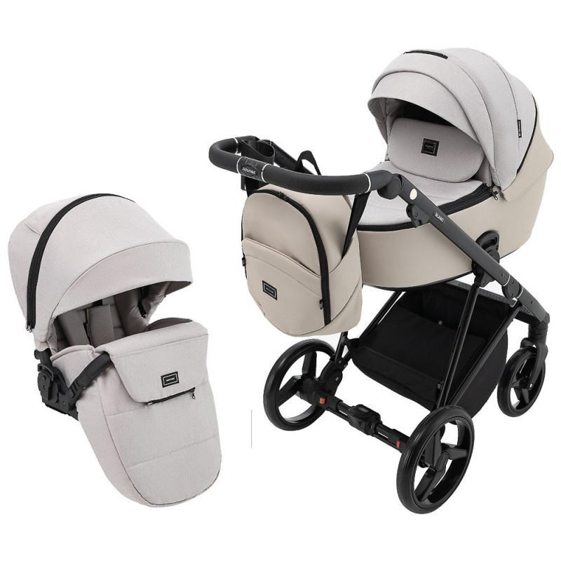 Люлька коляски Adamex Blanc пропонує просторе та комфортне спальне місце. Внутрішня бавовняна оббивка та матрац із кокосового волокна сприяють здоровому сну малюка. Накидка на ніжки добре закриває дитину від вітру, виконана із щільної тканини, кріпиться за допомогою блискавки. Капюшон оснащений кнопкою регулювання, великою секцією для провітрювання з москітною сіткою та додатковим козирком.