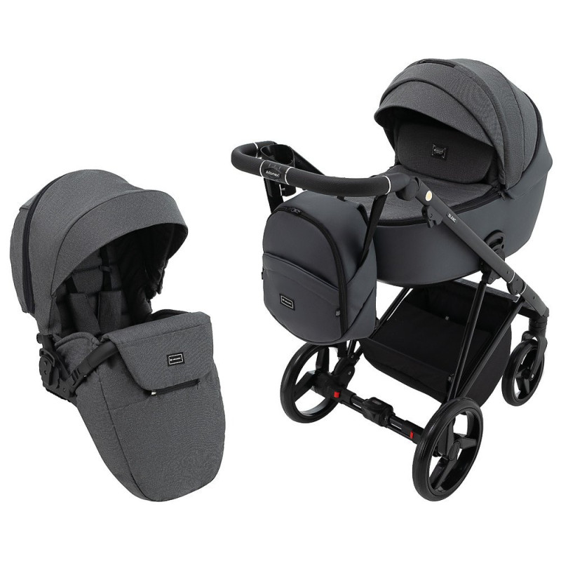 Додатково коляска комплектується практичною сумкою для домашнього використання та підсклянником. Можливе встановлення автомобільного крісла групи 0 (не входить до комплекту).
