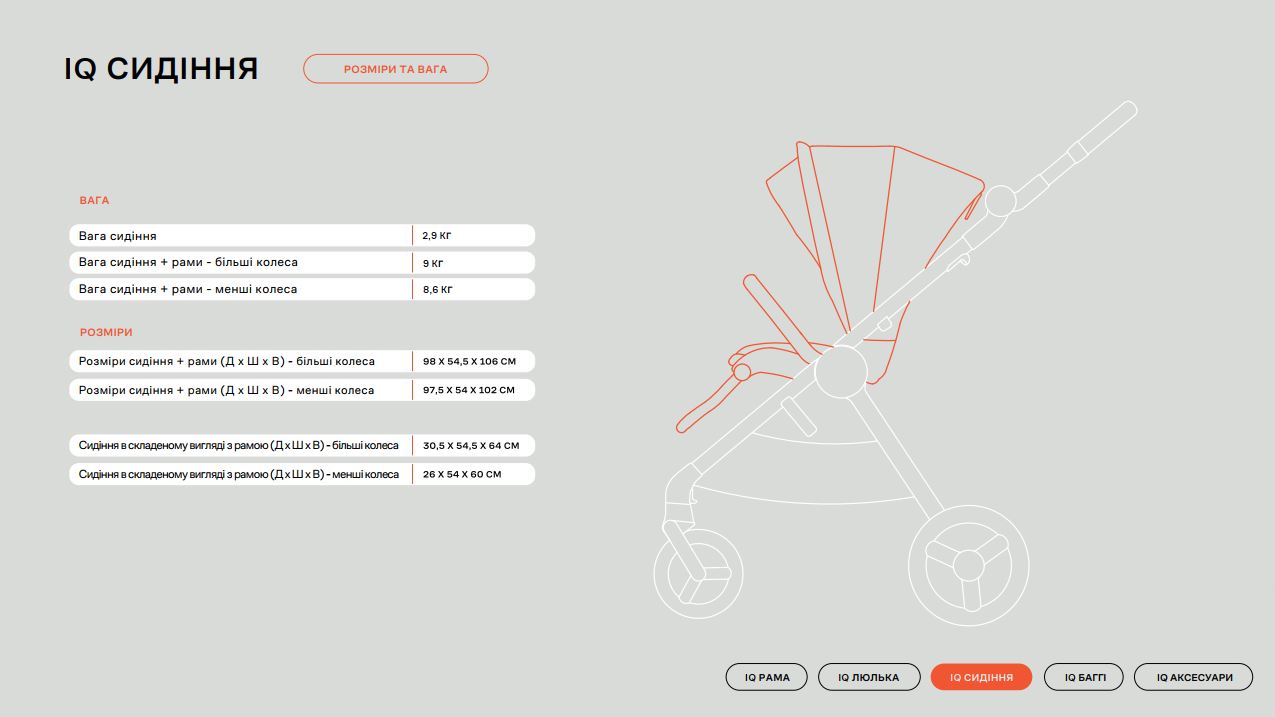 Одним з найвражаючих аспектів Anex IQ є її легкість і простота у використанні. Вона легко складається та розкладається, при цьому кожна конфігурація забезпечує максимальний комфорт для дитини завдяки м'якій амортизації та продуманій системі вентиляції 360°. Батьки можуть не турбуватися про зайвий простір – коляска зручно складається, а її компактний розмір дозволяє легко розмістити її в багажнику авто або в ручній поклажі для подорожей.
