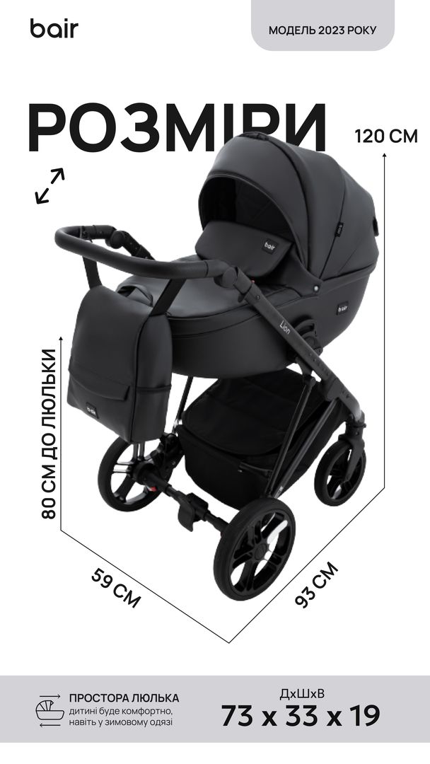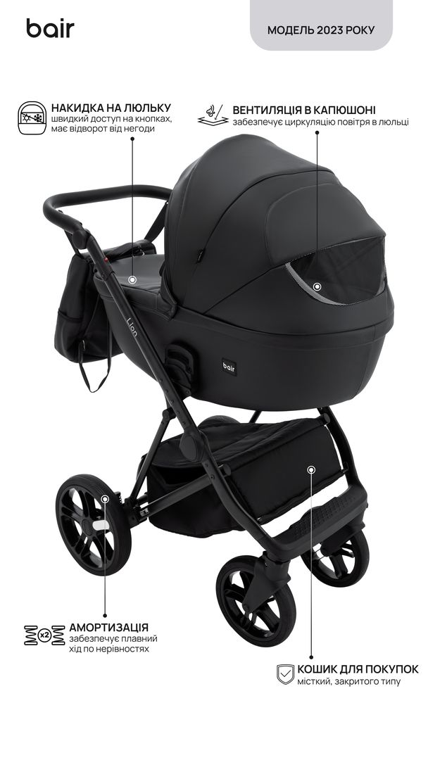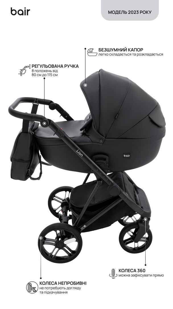 Дитяча коляска 2 в 1 Bair Lion - надійний і доступний варіант для батьків, створений для зручності та впевненості під час прогулянок.