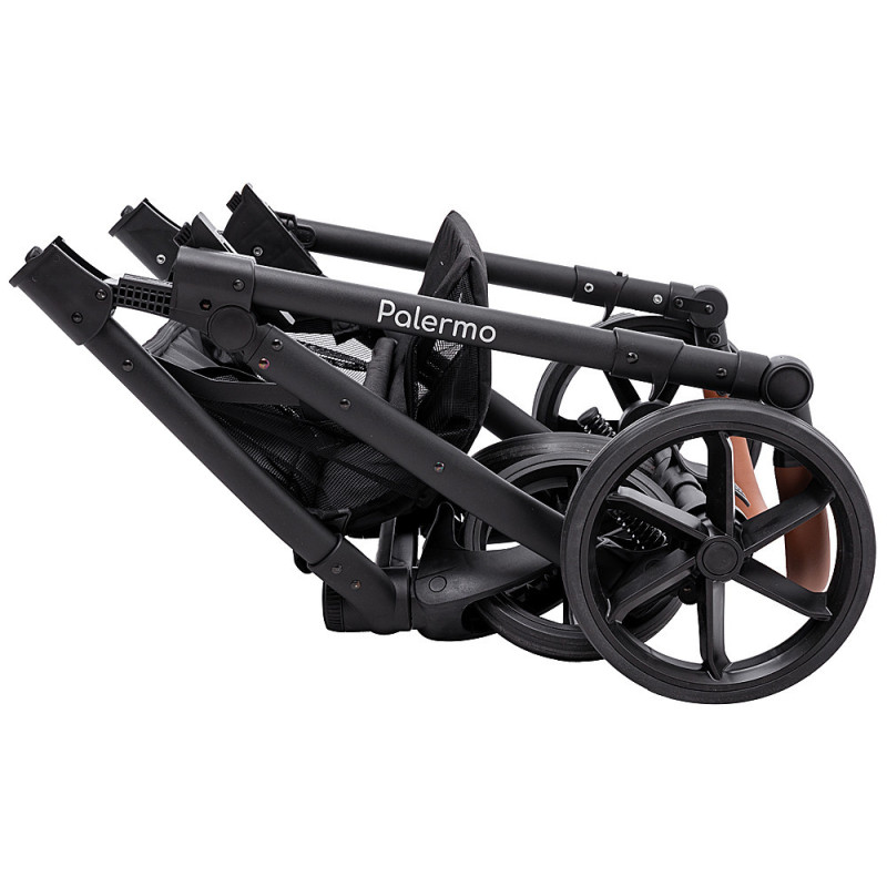 Ручка коляски Palermo, виконана з еко-шкіри, регулюється по висоті для зручності батьків різного зросту. Багажний кошик з сітчастими сторонами і підстаканник, зручно використовувати на прогулянках. Сумка для домашнього використання може бути закріплена на рамі коляски або носитися на плечі.