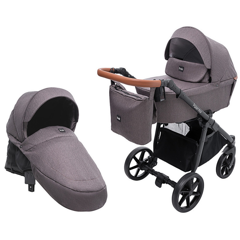 Ручка коляски Palermo, виконана з еко-шкіри, регулюється по висоті для зручності батьків різного зросту. Багажний кошик з сітчастими сторонами і підстаканник, зручно використовувати на прогулянках. Сумка для домашнього використання може бути закріплена на рамі коляски або носитися на плечі.