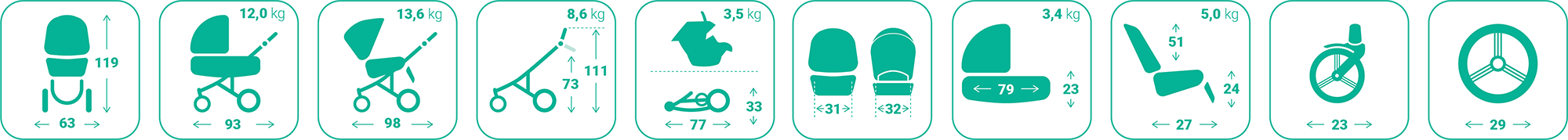 | Захист від сонця UV50+. Коляска має оббивку зі спеціальним захисним шаром, що поглинає ультрафіолетові промені. Він блокує значну частину шкідливого сонячного випромінення. | |