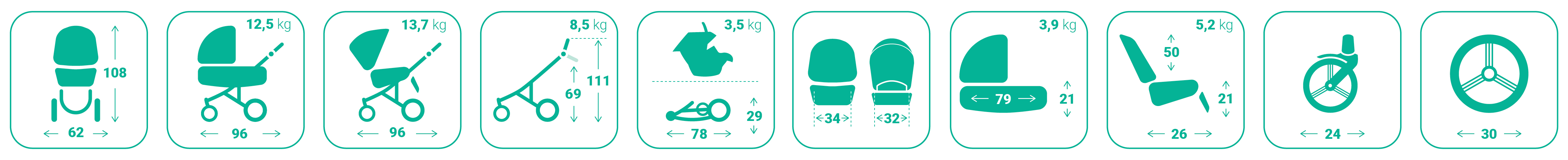 Розміри та вага коляски 2в1 Bebetto Pascal Premium